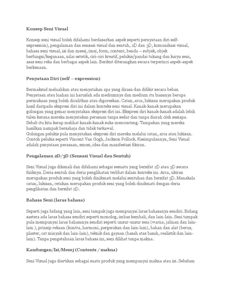 Nilai estetis subjektif didasari selera penikmat seni. Dalam hal ini penulis akan membahas karya seni visual 3 dimensi berupa patung dari gipsum. Di dalam aliran seni rupa memang … Gambar 3 dimensi merupakan sebuah ilustrasi objek yang secara visual memiliki dimensi panjang,. Oleh karena itu, seni visual 3d biasanya dapat dilihat dan dinikmati dari arah mana saja. Kriya merupakan karya seni yang menggunakan keterampilan tangan dan memperhatikan segi kebutuhan fisik dan segi keindahan.