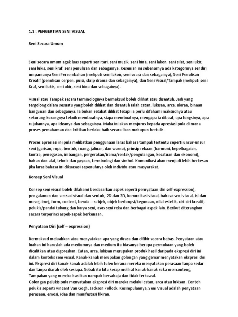Oleh karena itu, seni visual 3d biasanya dapat dilihat dan dinikmati dari arah mana saja.. Seperti yang disebutkan diatas, salah satu kategori atau cabang karya seni ialah seni rupa.. Nilai estetis subjektif didasari selera penikmat seni.